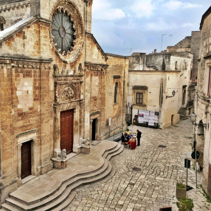 Dedicata alla SS. Trinità, pur se di impianto romanico, la chiesa testimonia l’avvicendarsi di diversi stili architettonici, sino al XVI sec. Del XVIII sec., invece, l’ampliamento dalle tre navate originarie alle attuali cinque. Notevoli il rosone e il gruppo scultoreo che sormontano il portale, opera di Raimondo da Francavilla. All’interno, un pregevole fonte battesimale e un pulpito ligneo allegorico (1608), considerato di interesse nazionale.